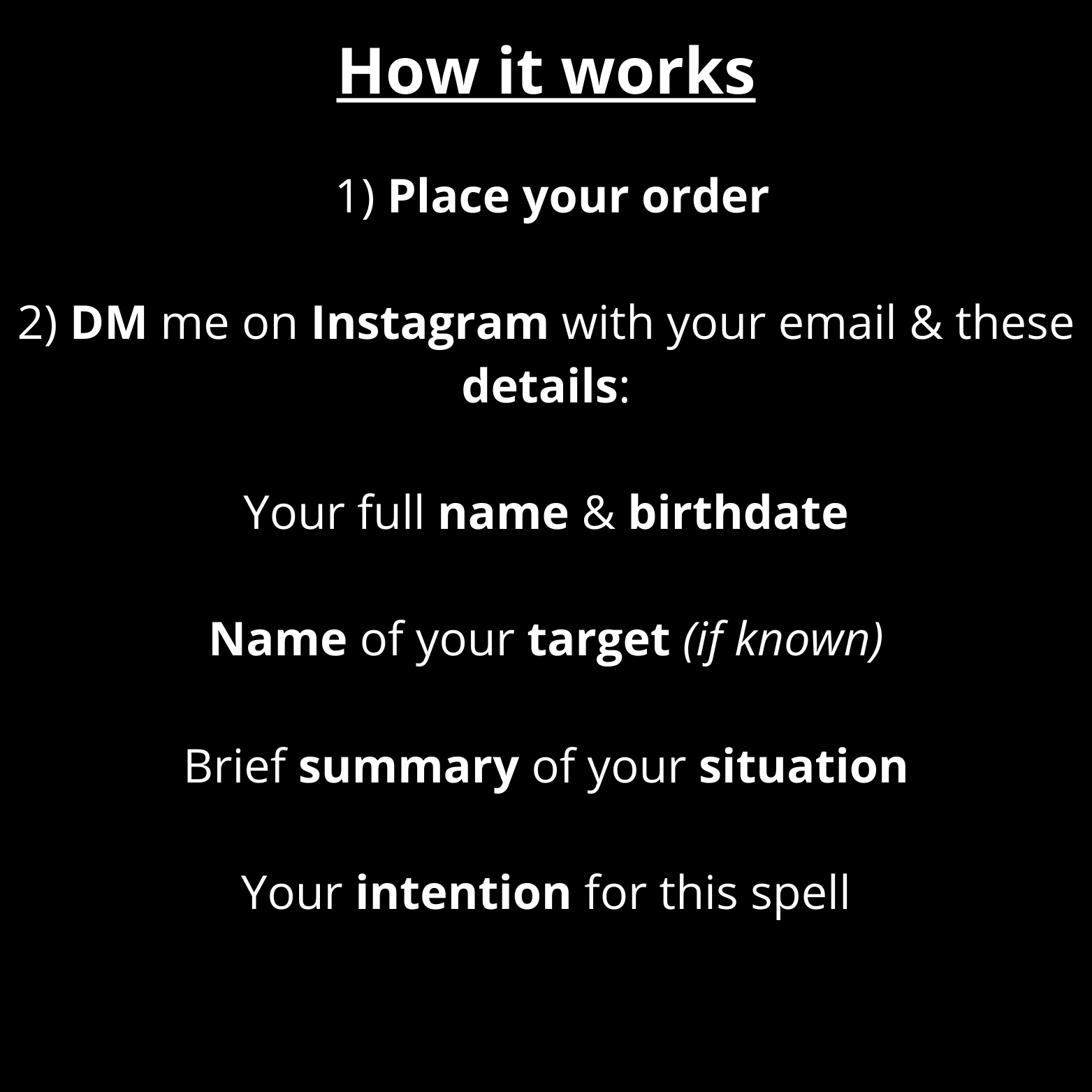 I offer a free consultation if you can't find the right spell. Please DM me on Instagram!